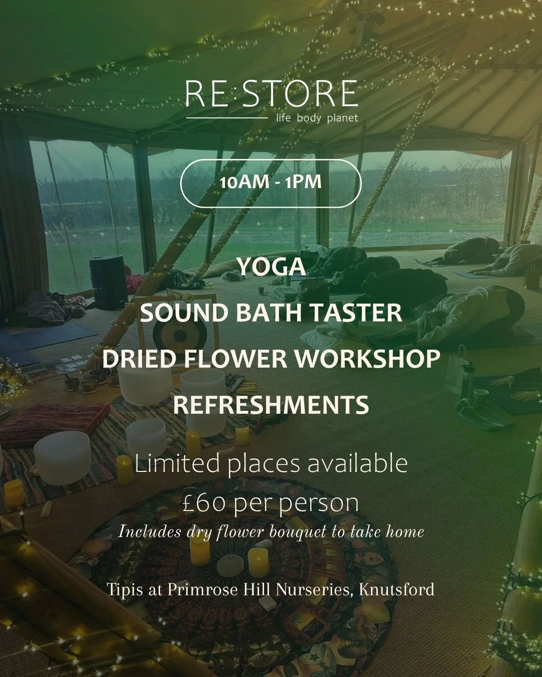 Events can be held in our store or at one of our partner venues, and we’ll work with you to design something special. From mini treatments and facial workshops to sound baths, yoga, Pilates and dried flower arranging, we can bring your ideas to life and create something truly memorable.Email us at info@restoremcr.co.uk to discuss your ideas. previous retreats